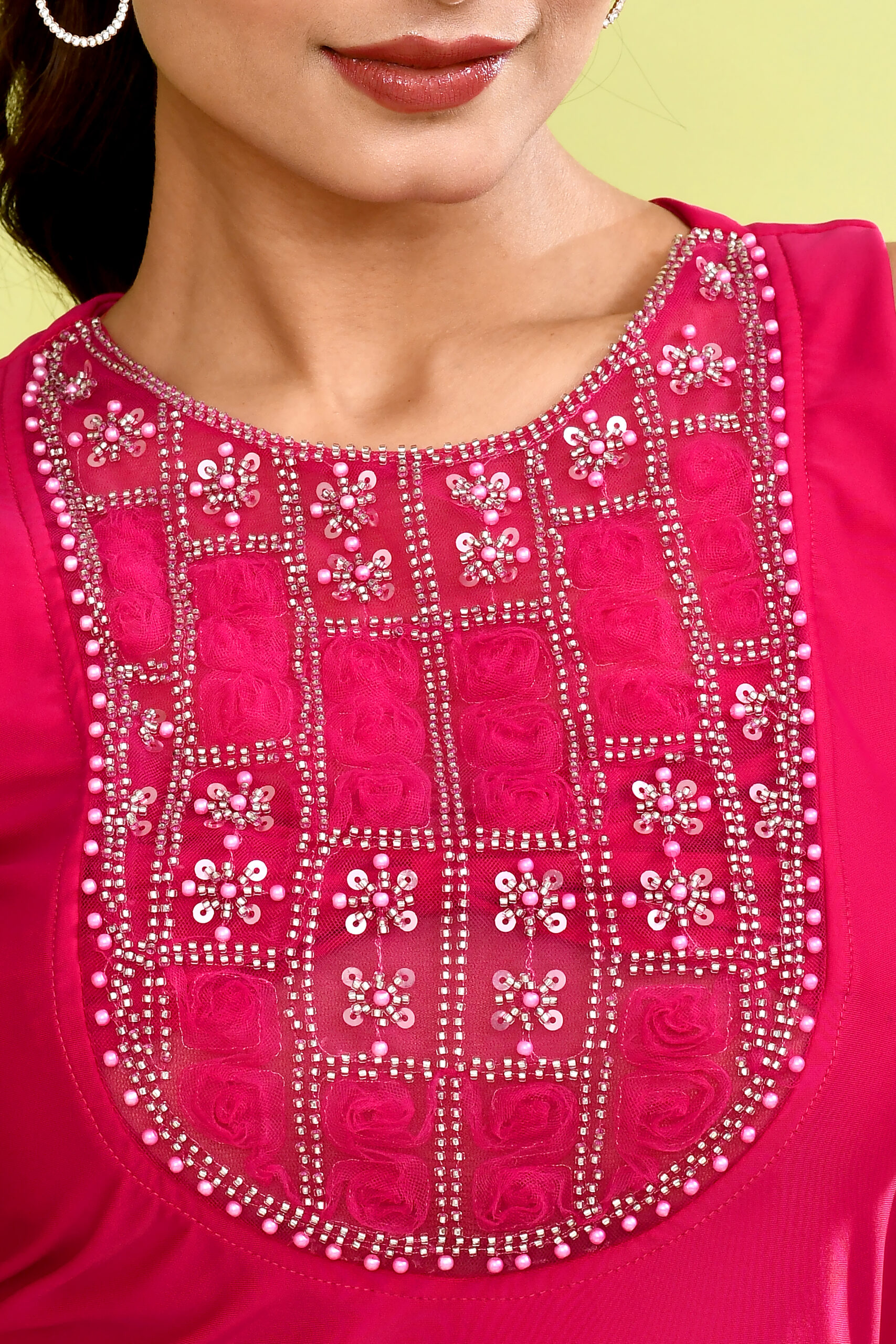 Hot Pink Embroidered Ruffle Hem Mini Dress – Designer Party & Cocktail Dress
