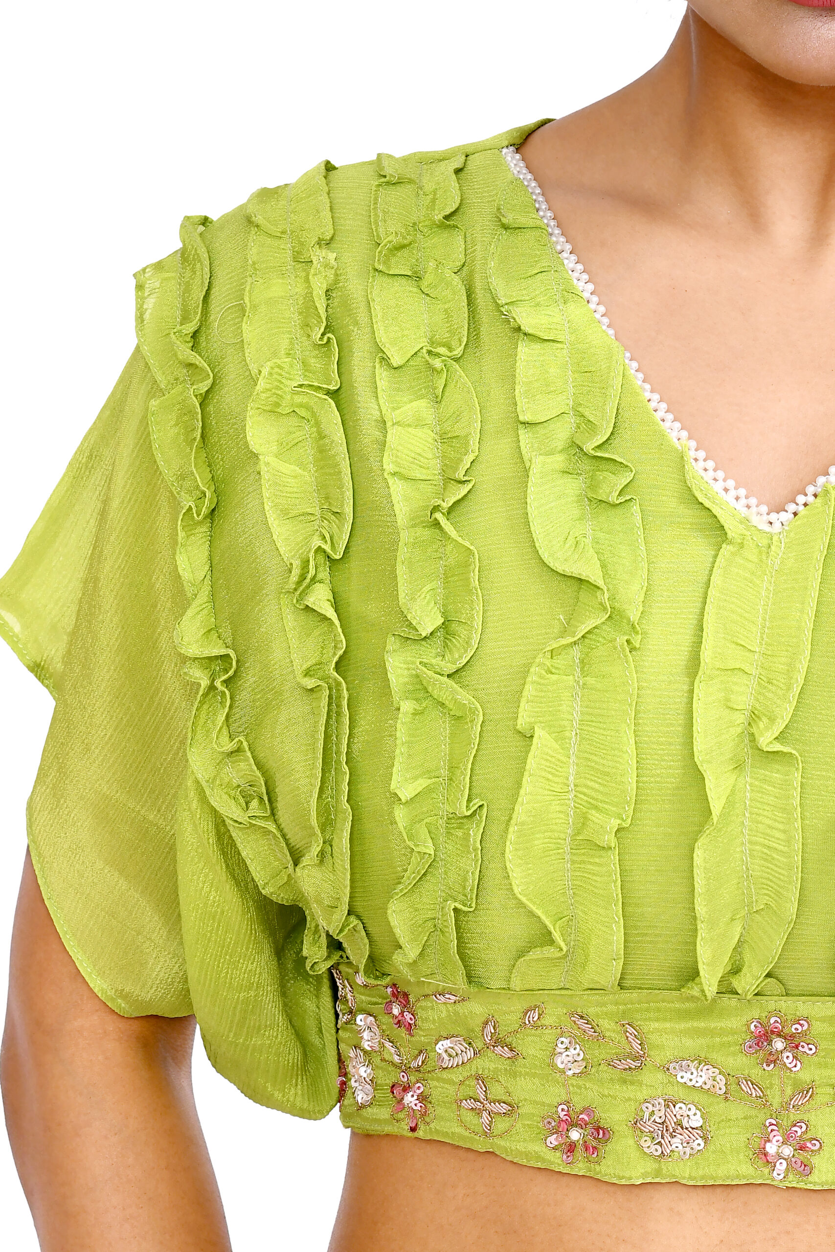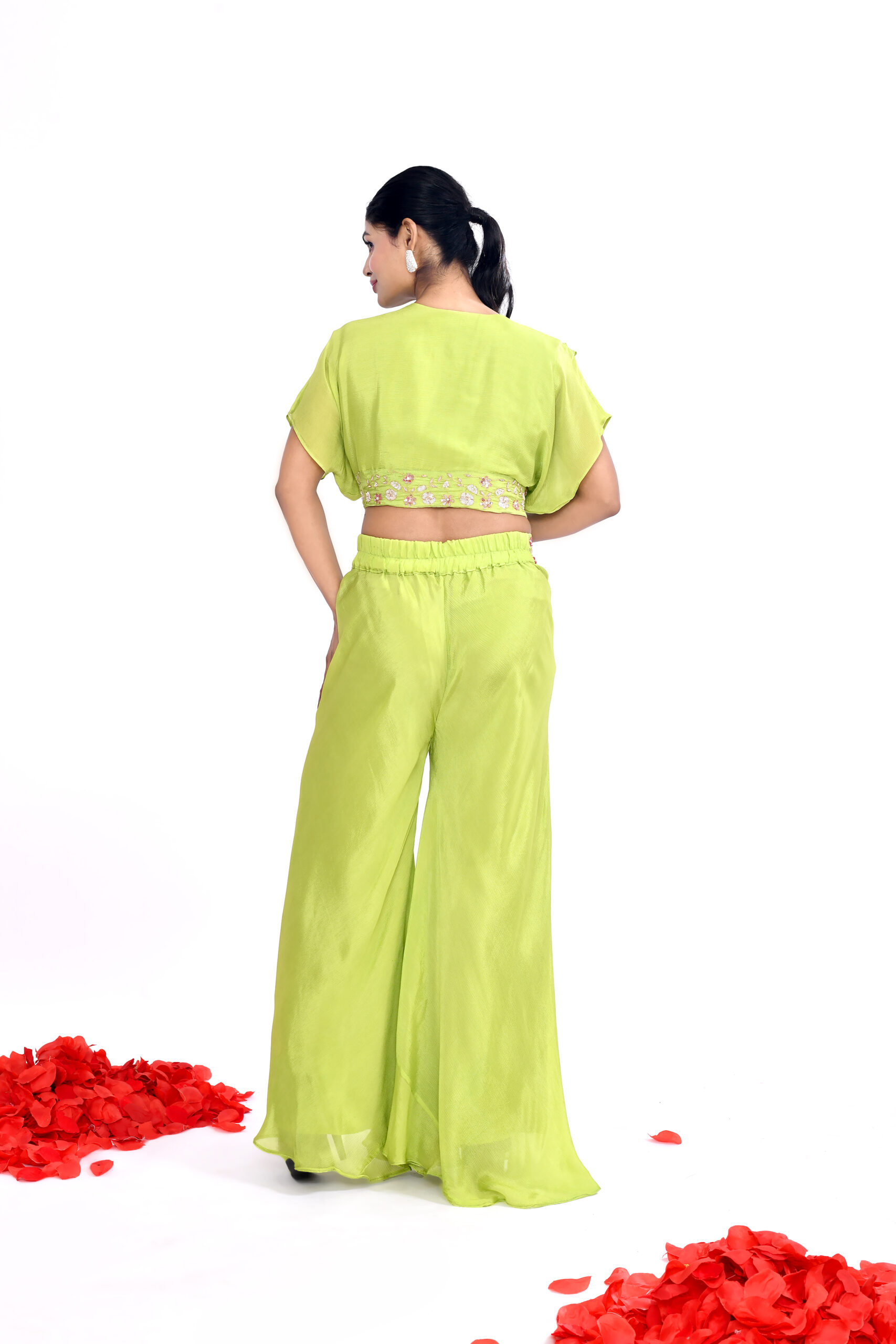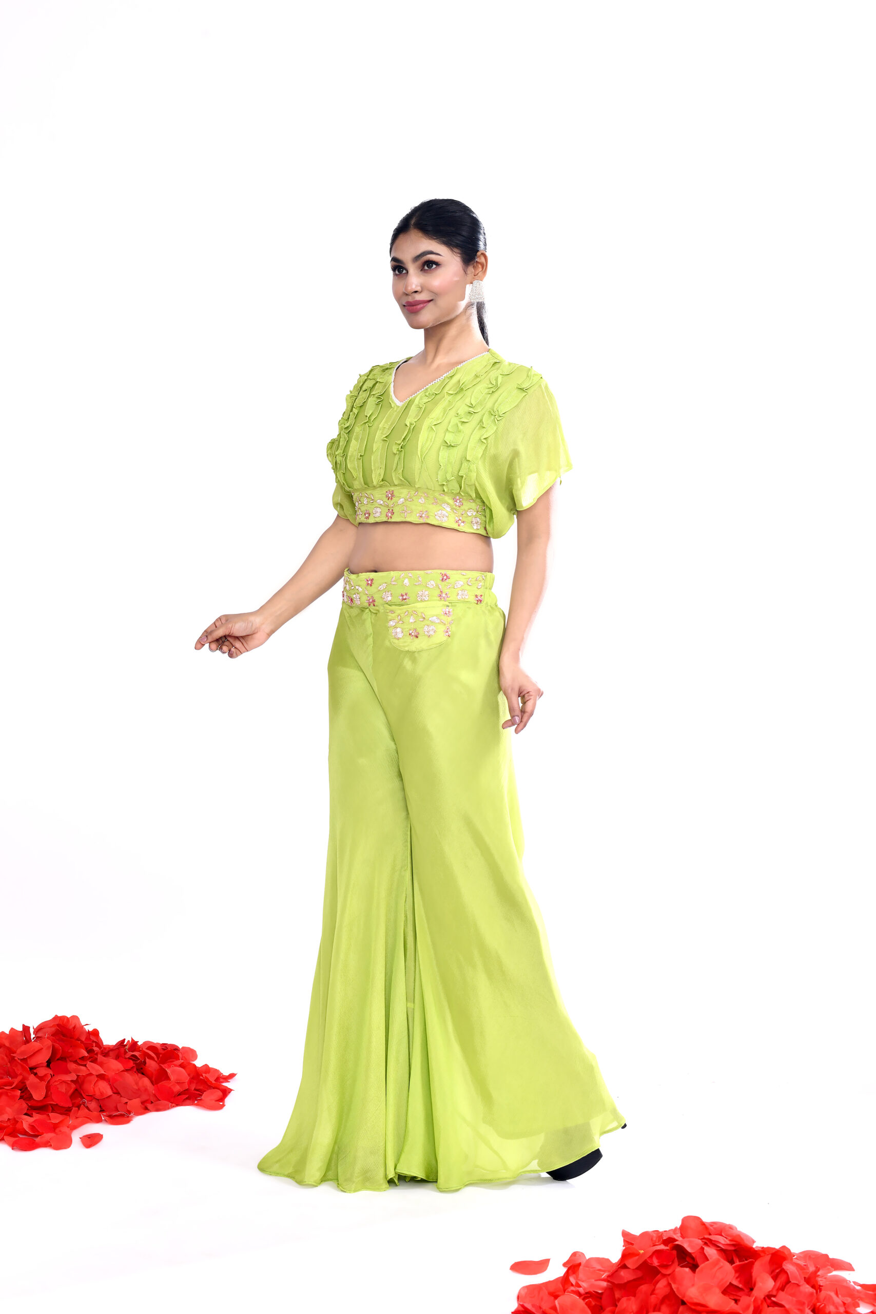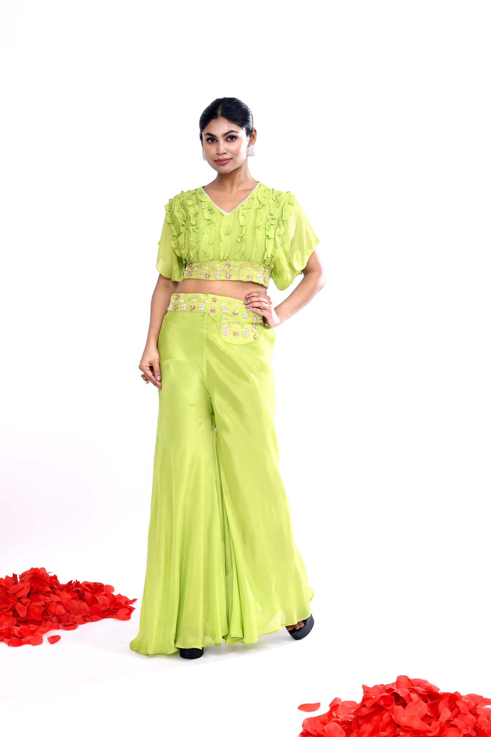 Lime Green Embroidered Co-ord Set (Crop Top And Palazzo)