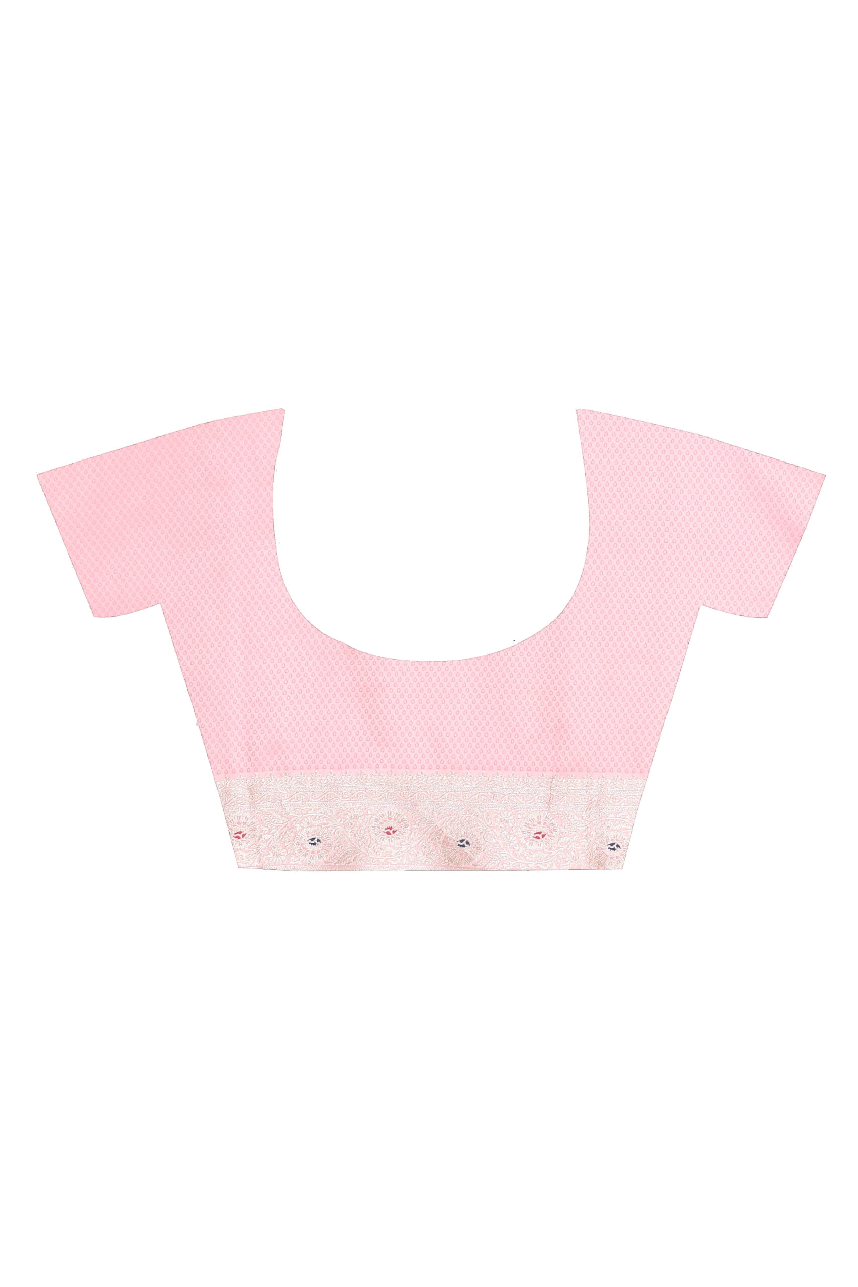 Powder Pink Banarasi Silk Saree with Meenakari workPowder Pink Banarasi Silk Saree with Meenakari work