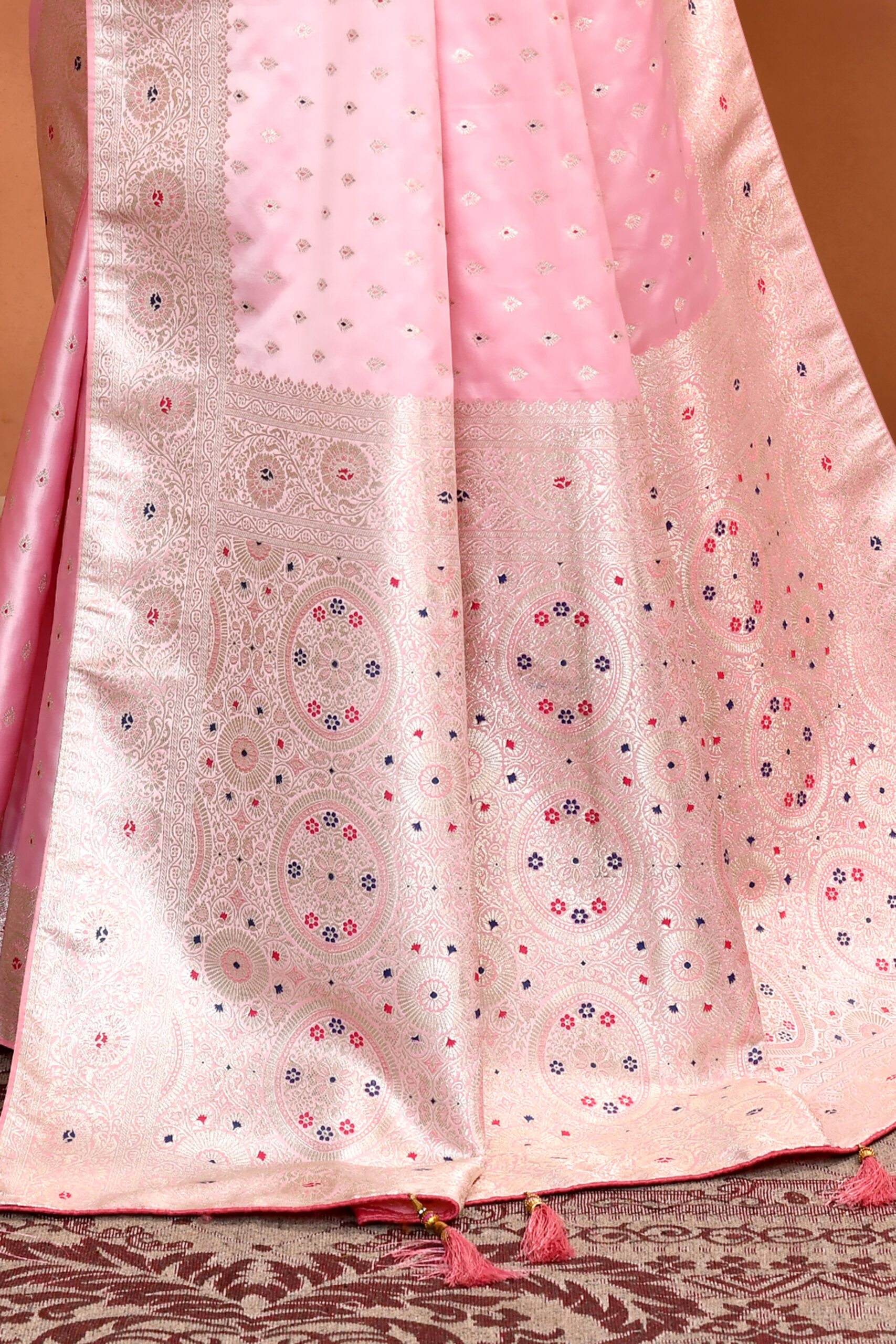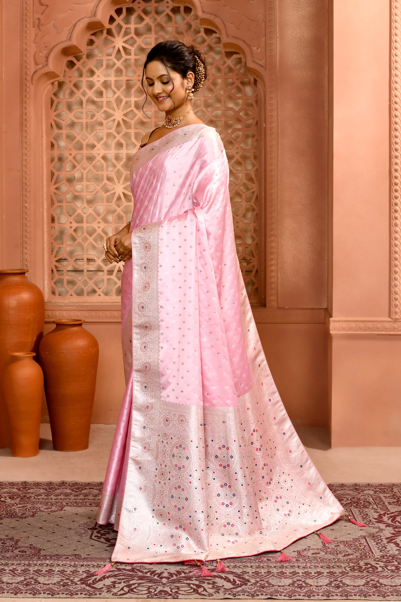 Powder Pink Banarasi Silk Saree with Meenakari work