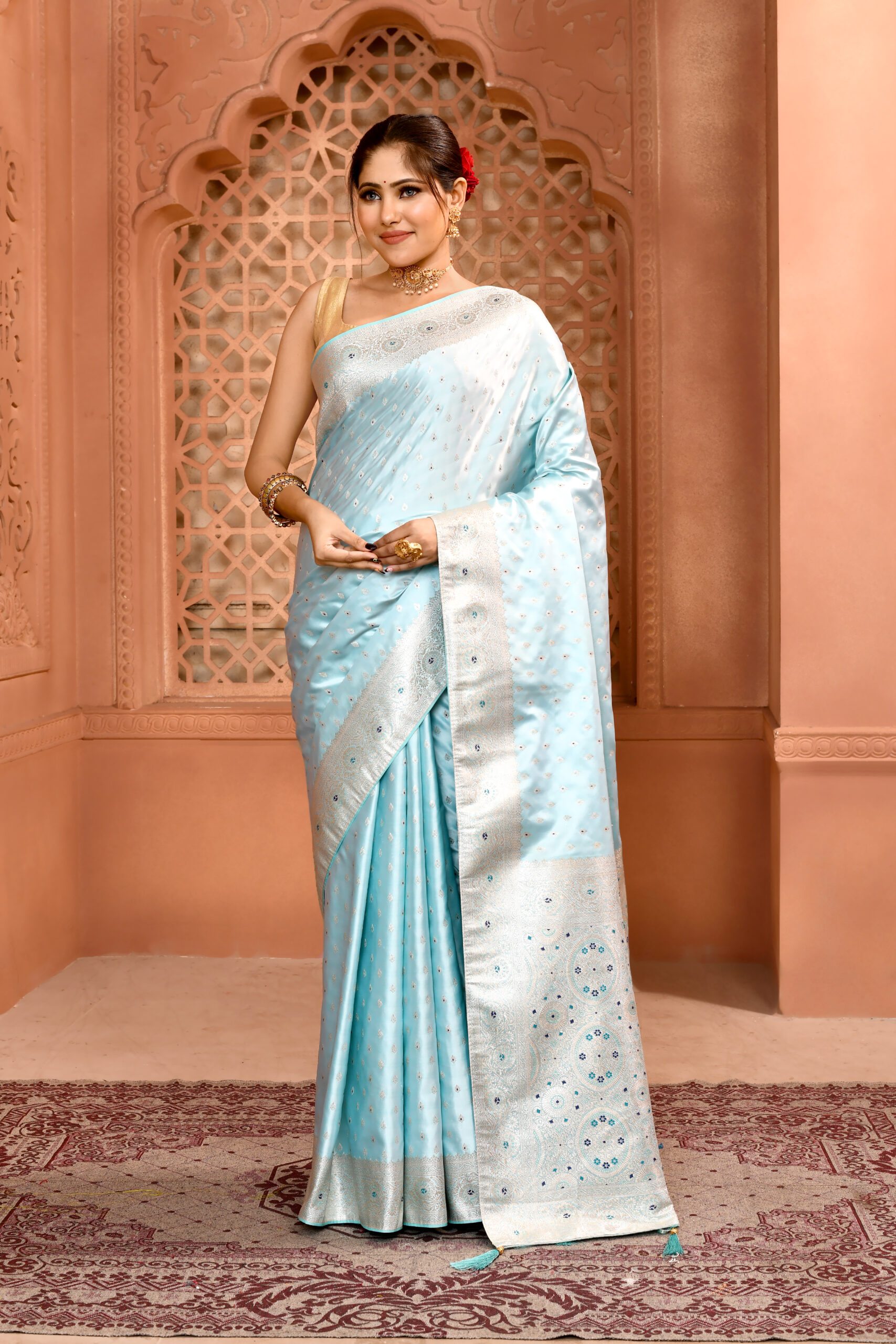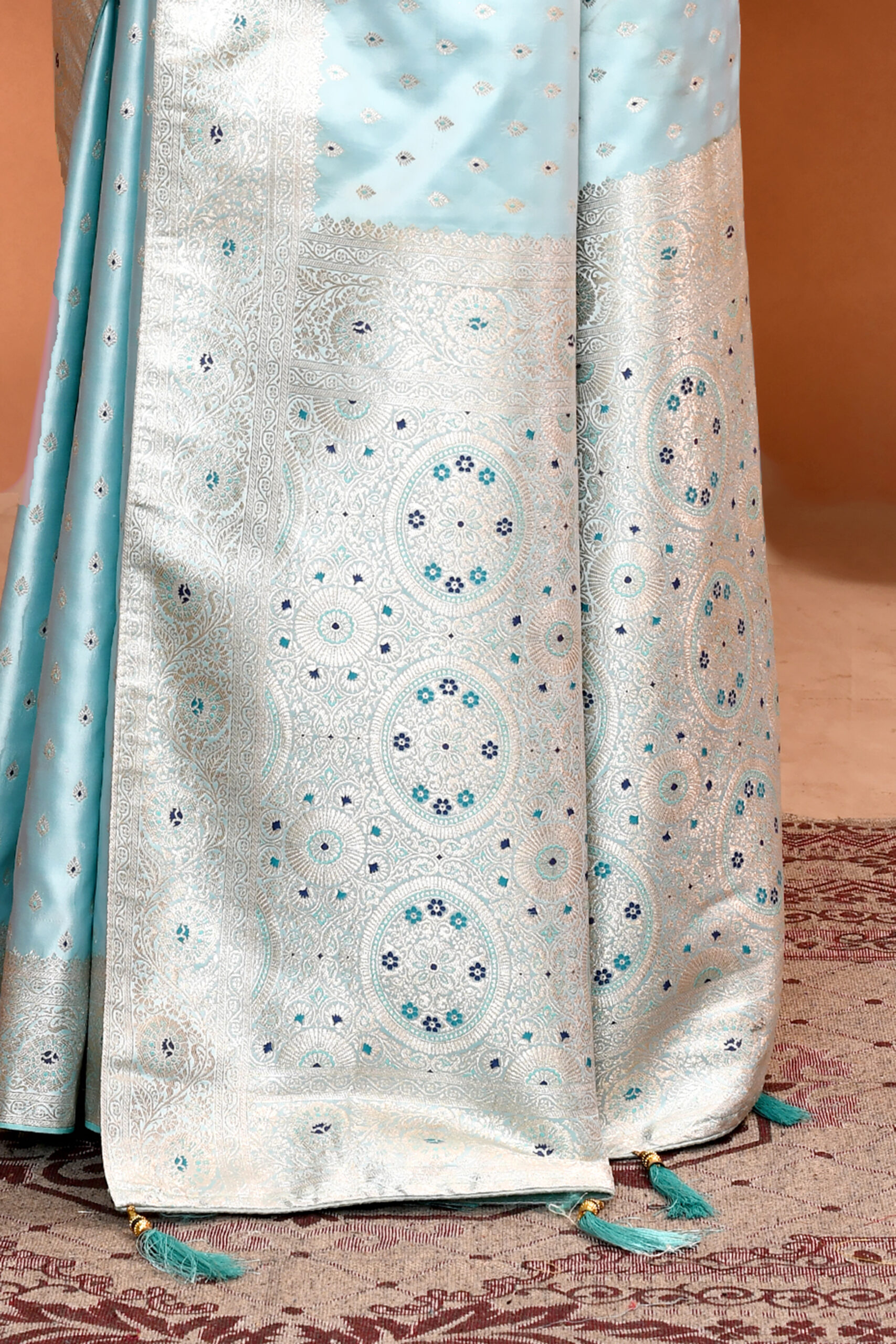 Sea Green Banarasi Silk Saree with Meenakari workSea Green Banarasi Silk Saree with Meenakari work