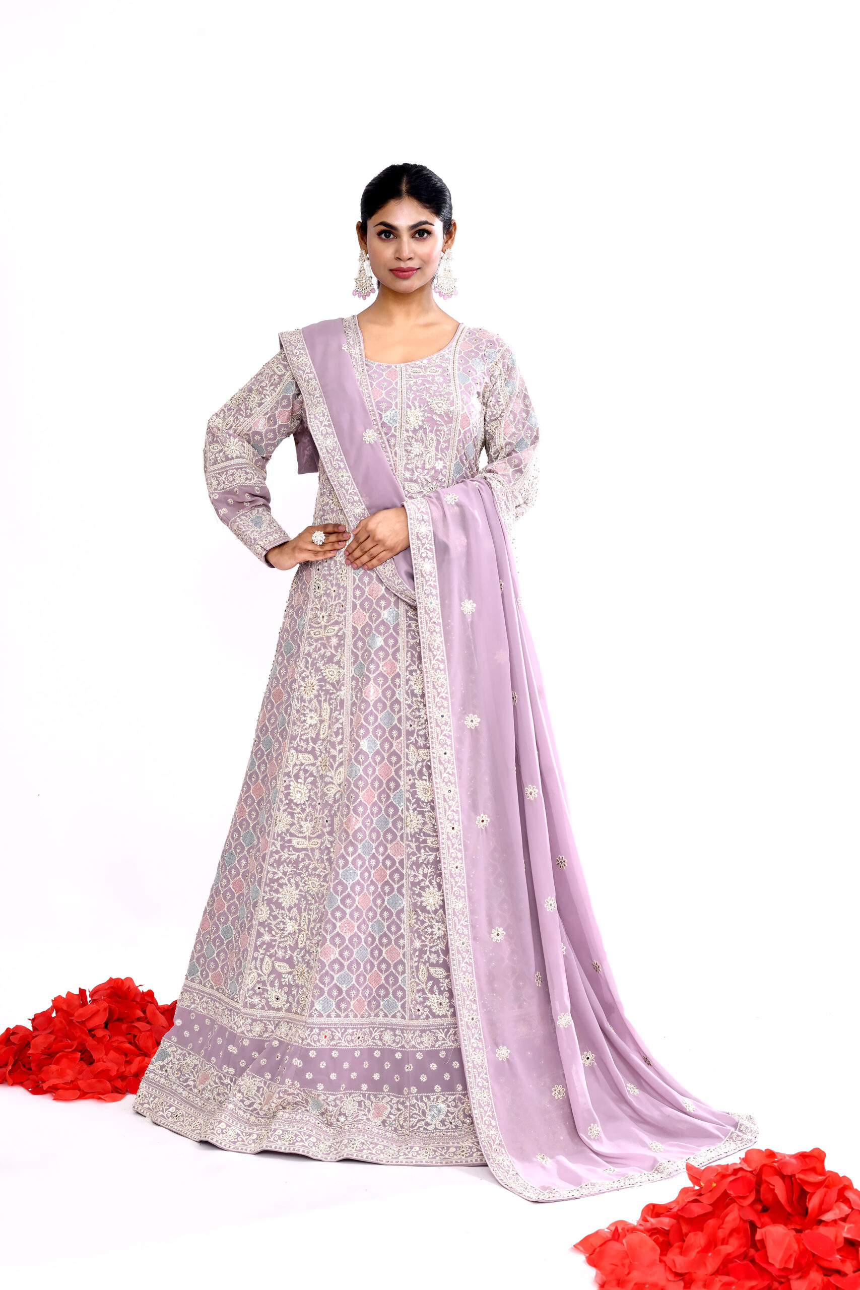 Lavender Embroidered Anarkali Suit with Dupatta